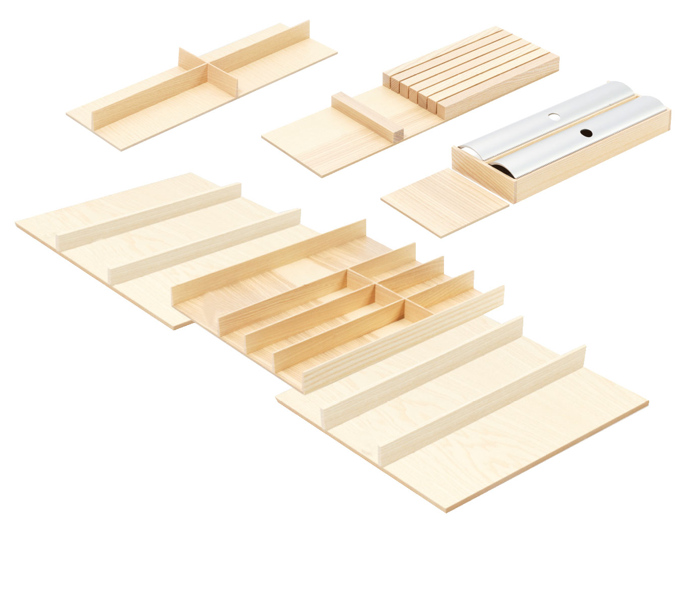 КОМПЛЕКТ лоток + делитель + держатели для фольги и для ножей, ФайнЛайн Линик 1000-1200 мм, глубина 500 мм, цвет ЯСЕНЬ светлый Kessebohmer
