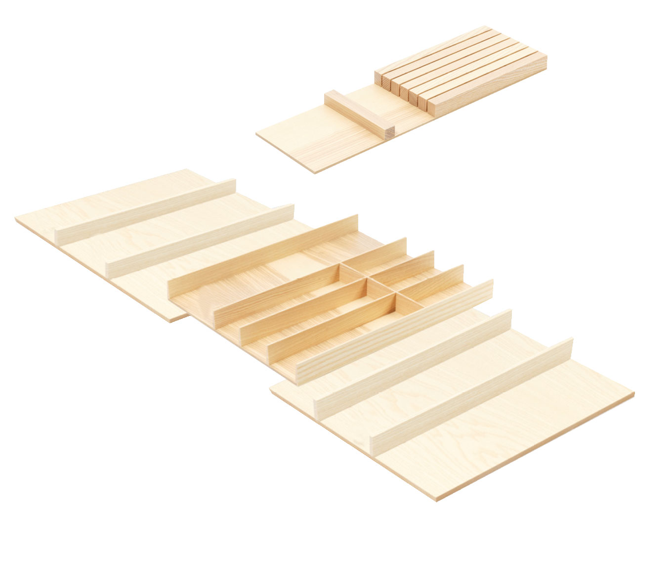 —КОМПЛЕКТ лоток + держатель для ножей, ФайнЛайн Линик 1000-1200 мм, глубина 500 мм, цвет ЯСЕНЬ светлый Kessebohmer