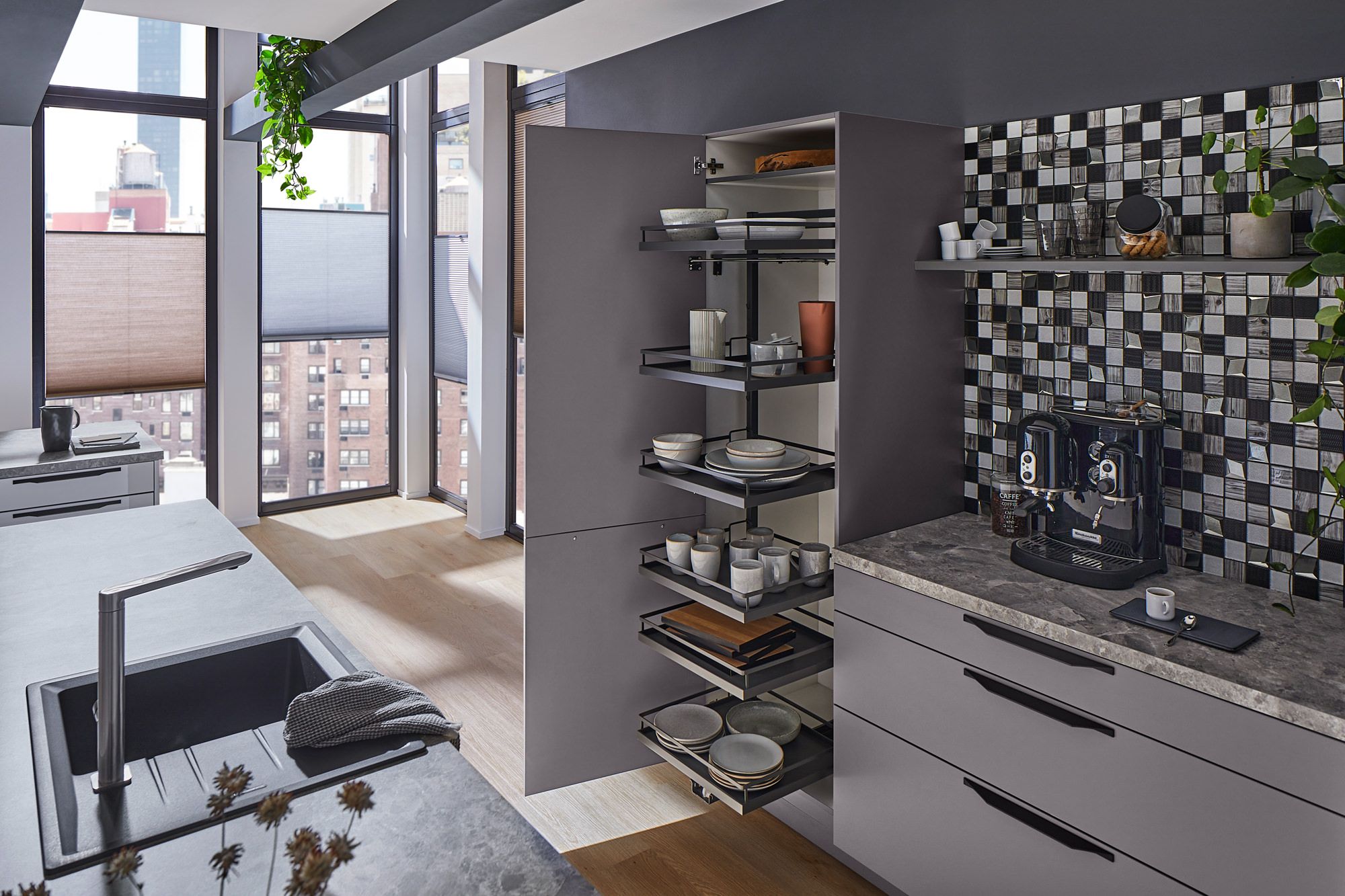 Прямые линии кухонного дизайна с полками Арена СТИЛЬ Kessebohmer в Саратове