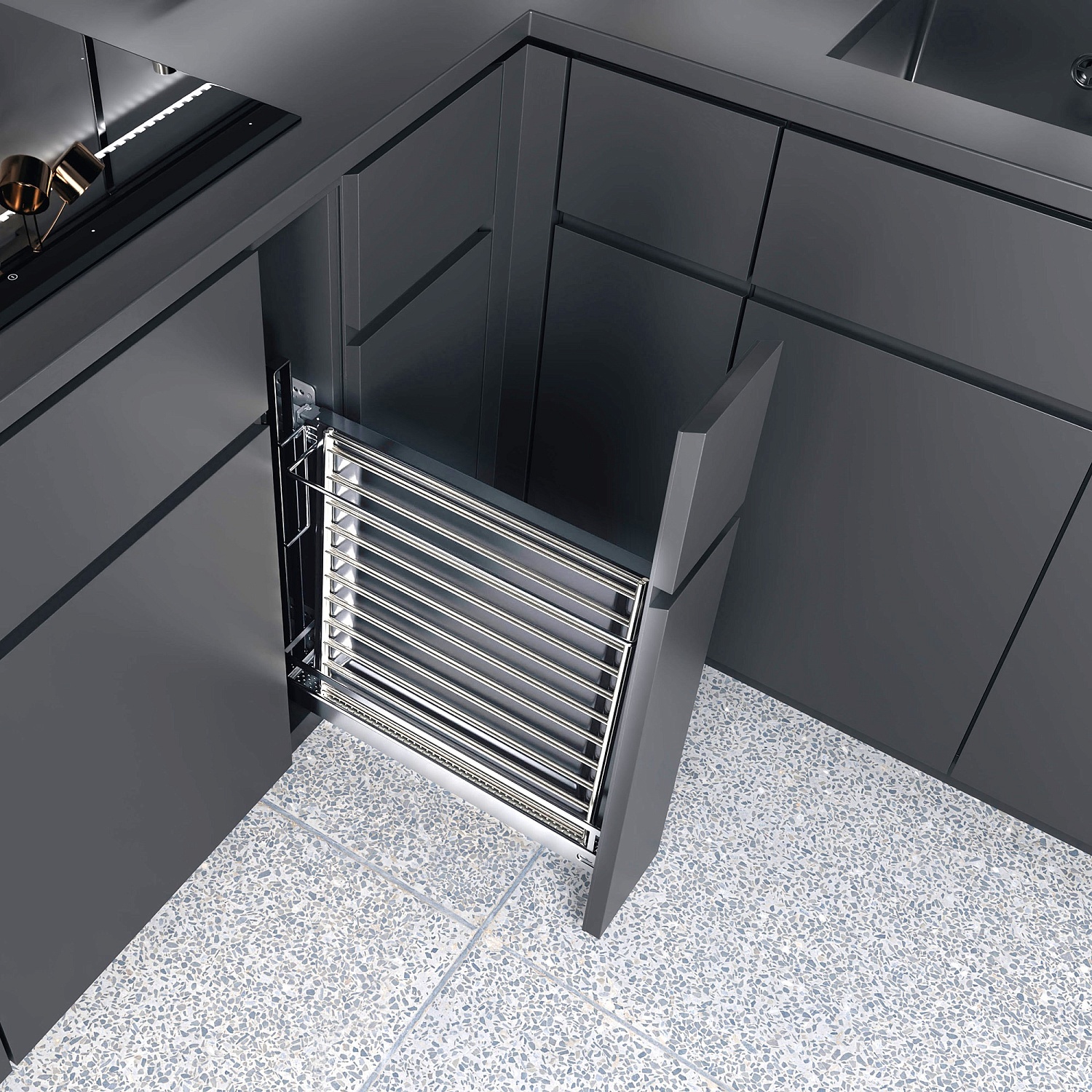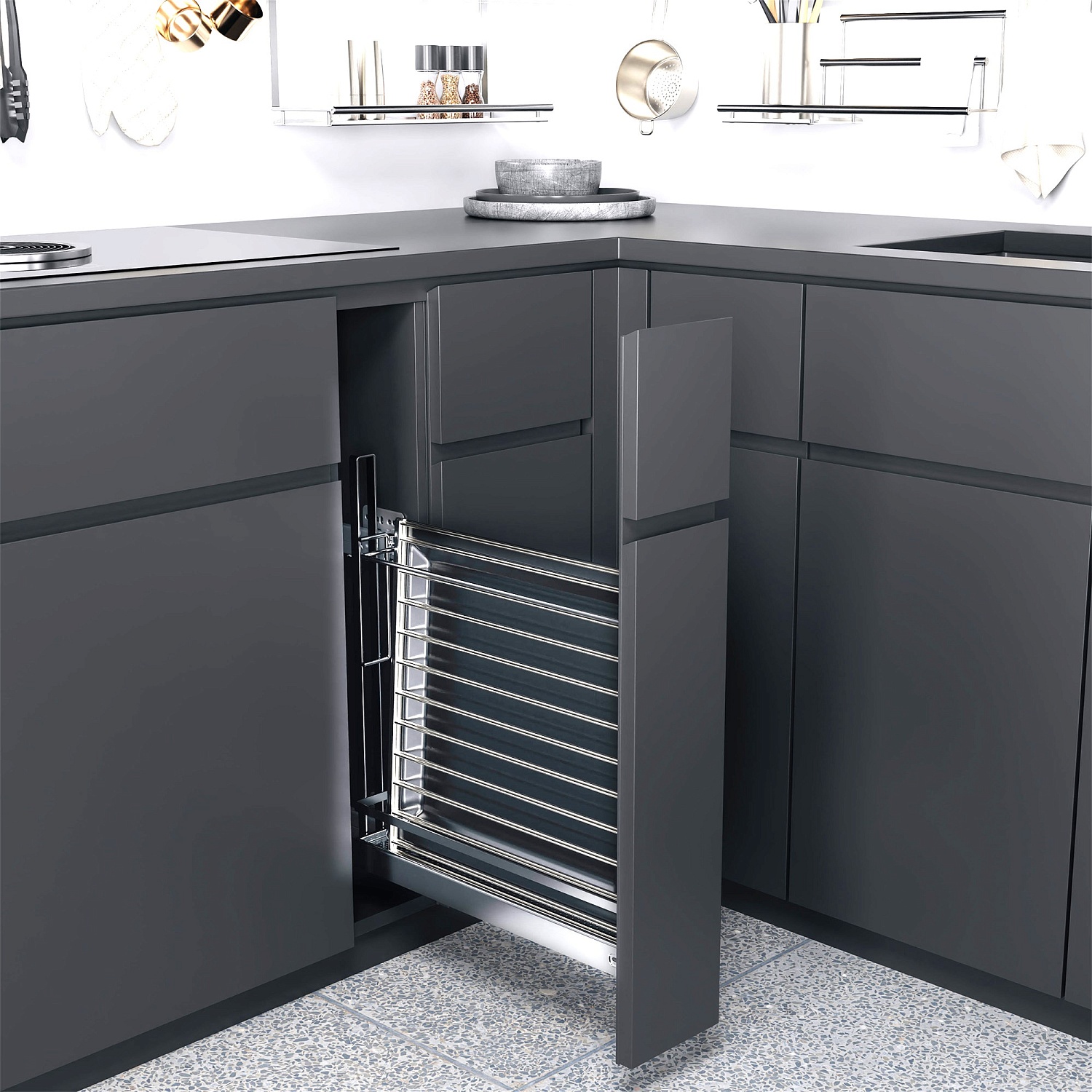 Бутылочница для противней №15 H 542 фасад 150 мм 3D