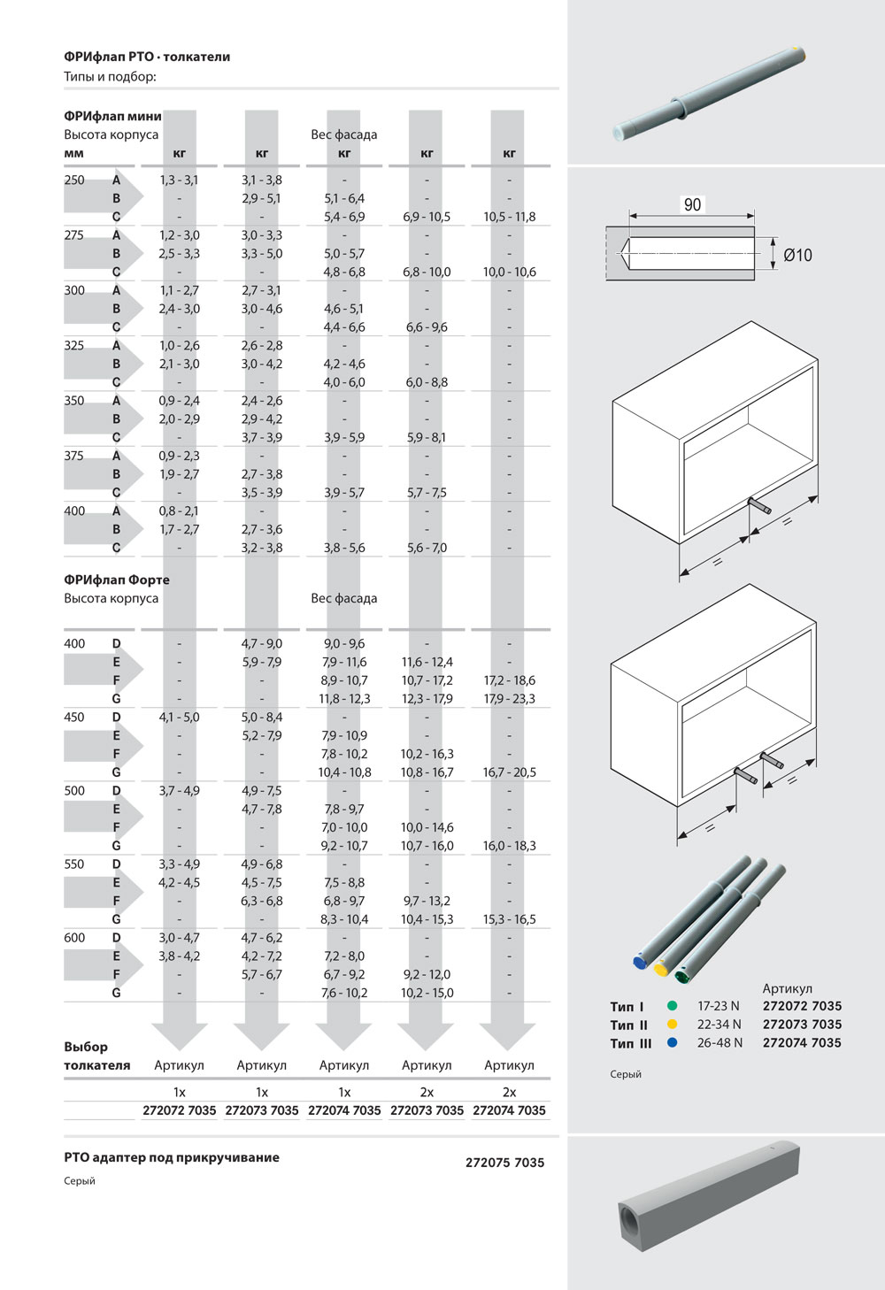 Толкатель PtO врезной ТИП I (А) 17 - 23N Серый Kessebohmer | официальный магазин