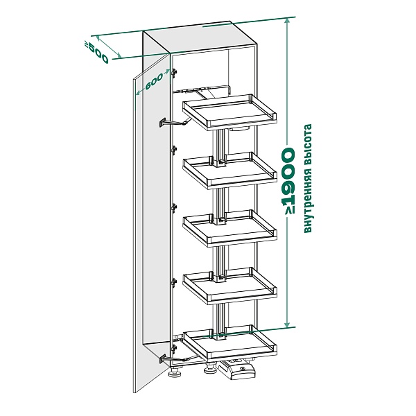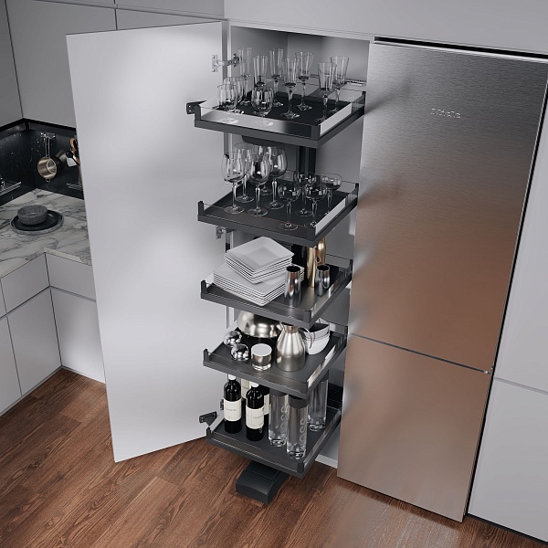КОМПЛЕКТ левый Конвой Премио 600 мм, H 1900+, Арена ВАРИО, 5 полок, цвет АНТРАЦИТ Kessebohmer | официальный магазин