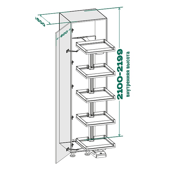 КОМПЛЕКТ левый Конвой Премио 600 мм, H 2100-2199, Арена ВАРИО, 5 полок, цвет АНТРАЦИТ Kessebohmer | официальный магазин