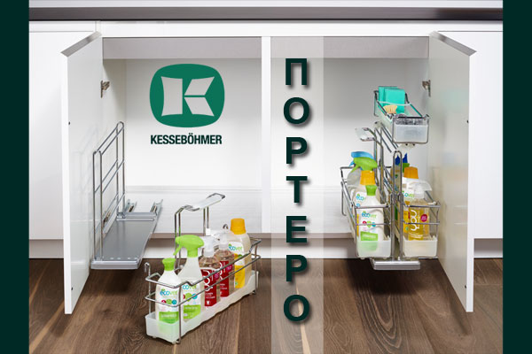 Чтобы уборка была в радость, Kesseböhmer предлагает Portero — гениальный органайзер для аккуратного и практичного хранения чистящих средств. Это выдвижной механизм для кухонного шкафа, который сочетает в себе функциональность и портативность. Устанавливаемый под раковиной, Portero эффективно использует ранее не задействованное пространство.